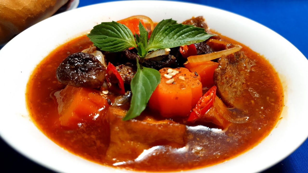 – Múc bò kho chay ra tô, rắc ít tiêu, dùng nóng với bánh mì hoặc hủ tiếu.