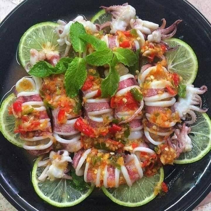 Mực hấp sả sốt mắm chanh với thịt mực tươi hấp chín giòn sần sật, trộn cùng nước sốt chua cay, mặn ngọt cực ngon.