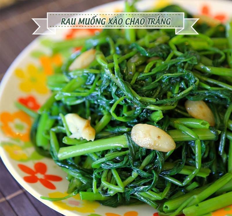 Tỏi bóc vỏ, băm nhuyễn. Rau muống nhặt, ngắt khúc, rửa sạch với nước, để ráo. Phi thơm tỏi băm với dầu ăn trong chảo, cho rau muống, chao, 1/2 muỗng cà phê muối, 1/2 muỗng cà phê hạt nêm chay, 1/2 muỗng cà phê bột ngọt cho vừa ăn, xào khoảng 3 phút.