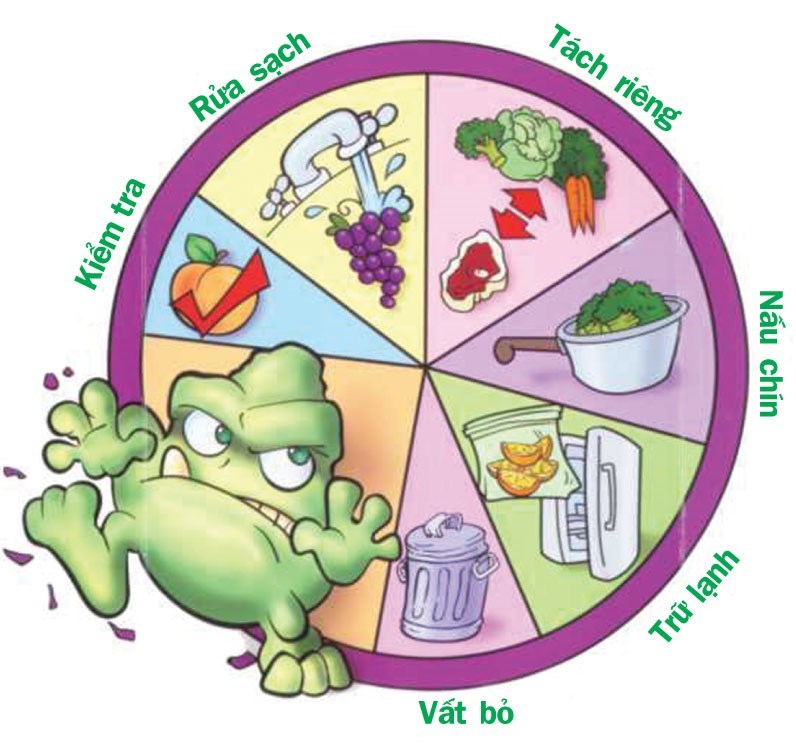 1-  !important; Chon thực phẩm an toàn, xanh tươi, rau quả ăn sống phải được ngâm rử bằng nước sạch, quả nên gọt vỏ trước khi ăn. Thực phẩm đông lạnh nếu để tan đá rồi làm đông đá lại là kém an toàn.