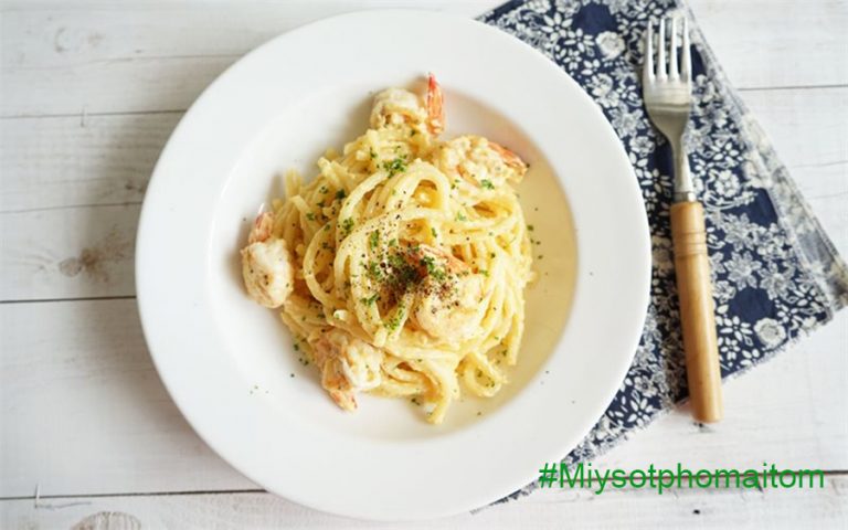 Cho mì Ý sốt kem phô mai ra dĩa, trang trí với lá parsley băm nhuyễn, rắc thêm một ít tiêu và phô mai bột. Từng sợi mì Ý sốt kem dai ngon phủ đầy sốt kem béo ngậy và những con tôm chắc thịt sẽ là món ăn hấp dẫn cho những tín đồ thích béo và mê mì Ý nhé! Có cách làm mì Ý sốt kem phô mai này rồi, bữa “hẹn hò” chắc chắn thành công luôn đó.