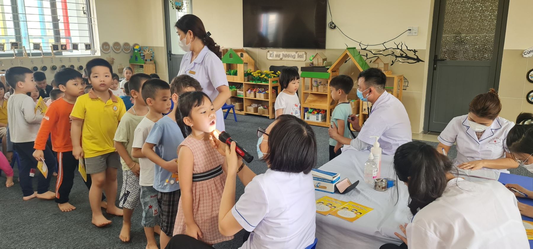 Dưới đây là một số hình ảnh khám sức khỏe định kì tại trường mầm non Hoa Hướng Dương: