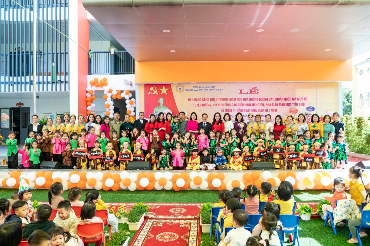 Đây cũng là dịp khen ngợi các Đ/c CBGVNV có thành tích xuất sắc trong công tác nuôi dưỡng, chăm sóc, giáo dục trẻ. Đó chính là những thành tích tươi thắm, rực rỡ chào mừng kỷ niệm 41 năm ngày Nhà giáo Việt Nam của thầy và trò trường MN Hoa Hướng Dương, đóng góp chung vào thành tích của ngành Giáo dục và Đào tạo quận Long Biên.