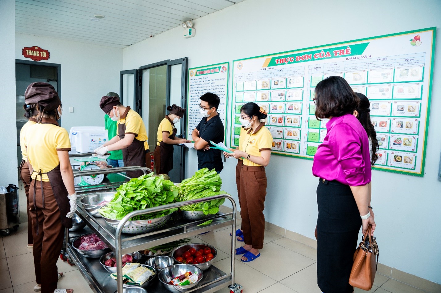 Tại buổi kiến tập, đại diện các trường trong Quận đã được kiến tập về công tác quản lý chăm sóc nuôi dưỡng trong trường mầm non: Từ quy trình giao nhận thực phẩm bằng hình thức truyền hình trực tuyến, đến các khâu sơ chế, việc phối hợp dây chuyền trong chế biến các món ăn, chia ăn, hệ thống hồ sơ sổ sách nuôi dưỡng, cập nhật phầm mềm tính ăn Gokids, cách sắp xếp, bố trí bếp ăn sạch sẽ, ngăn nắp, khoa học, hợp lý, gọn gàng với trang thiết bị mới đồng bộ, hiện đại và những sáng tạo mới trong cách chế biến món ăn hợp khẩu vị và cách trình bày hấp dẫn trẻ, cùng với việc đổi mới hình thức tổ chức giờ ăn cho trẻ giúp trẻ ăn hết xuất và ăn ngon miệng.
