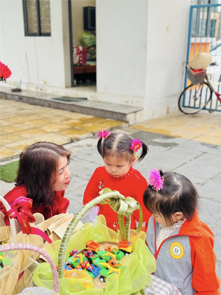 Các bé đến lớp với gương mặt háo hức, tay trong tay cùng cô giáo đón nhận những những mí quà yêu thương đầu năm – món quà nhỏ mang theo lời chúc chăm ngoan, mạnh khỏe, bình an và may mắn. Từng ánh mắt long lanh, từng nụ cười rạng rỡ đã làm bừng sáng cả không gian ngày xuân.