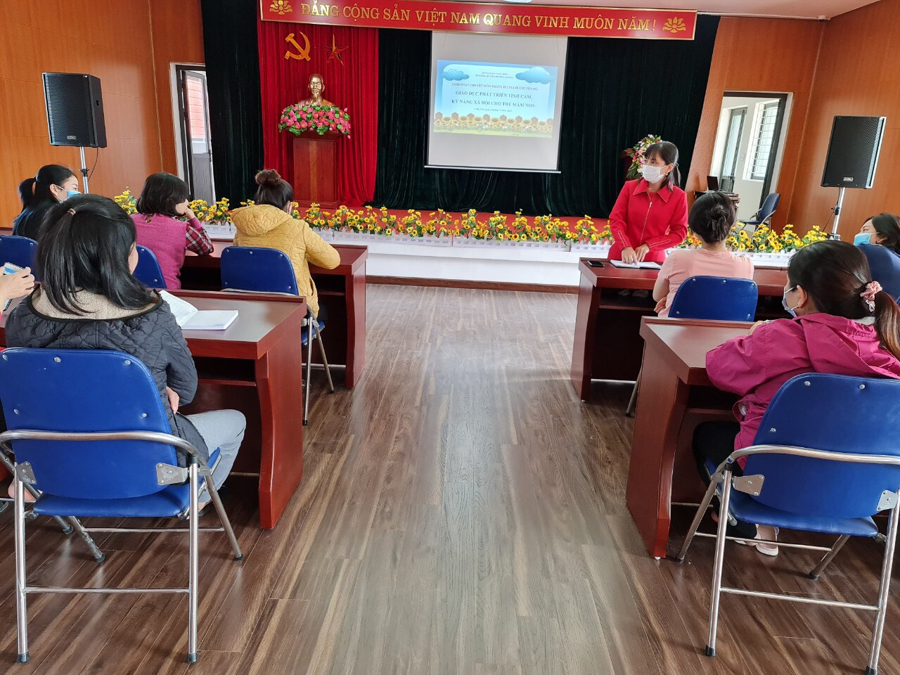 Sáng ngày 09/11/202, Trường mầm non Hoa Hướng Dương tổ chức chia sẻ nội dung tập huấn "Phương pháp phát triển kỹ năng, tình cảm xã hội cho trẻ mầm non" đến toàn thể cán bộ giáo viên trong nhà trường.