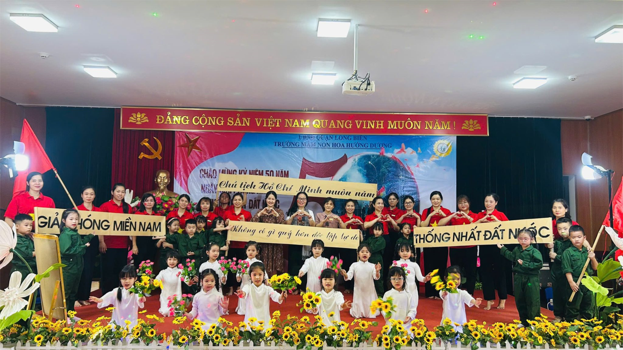 Nhân dịp kỷ niệm 50 năm ngày Giải phóng miền Nam, thống nhất đất nước (30/4/1975 – 30/4/2025), Trường Mầm Non Hoa Hướng Dương hân hoan tổ chức “Ngày hội Non Sông” nhằm ôn lại truyền thống hào hùng của dân tộc, bồi dưỡng lòng yêu nước và niềm tự hào dân tộc cho các thế hệ măng non.