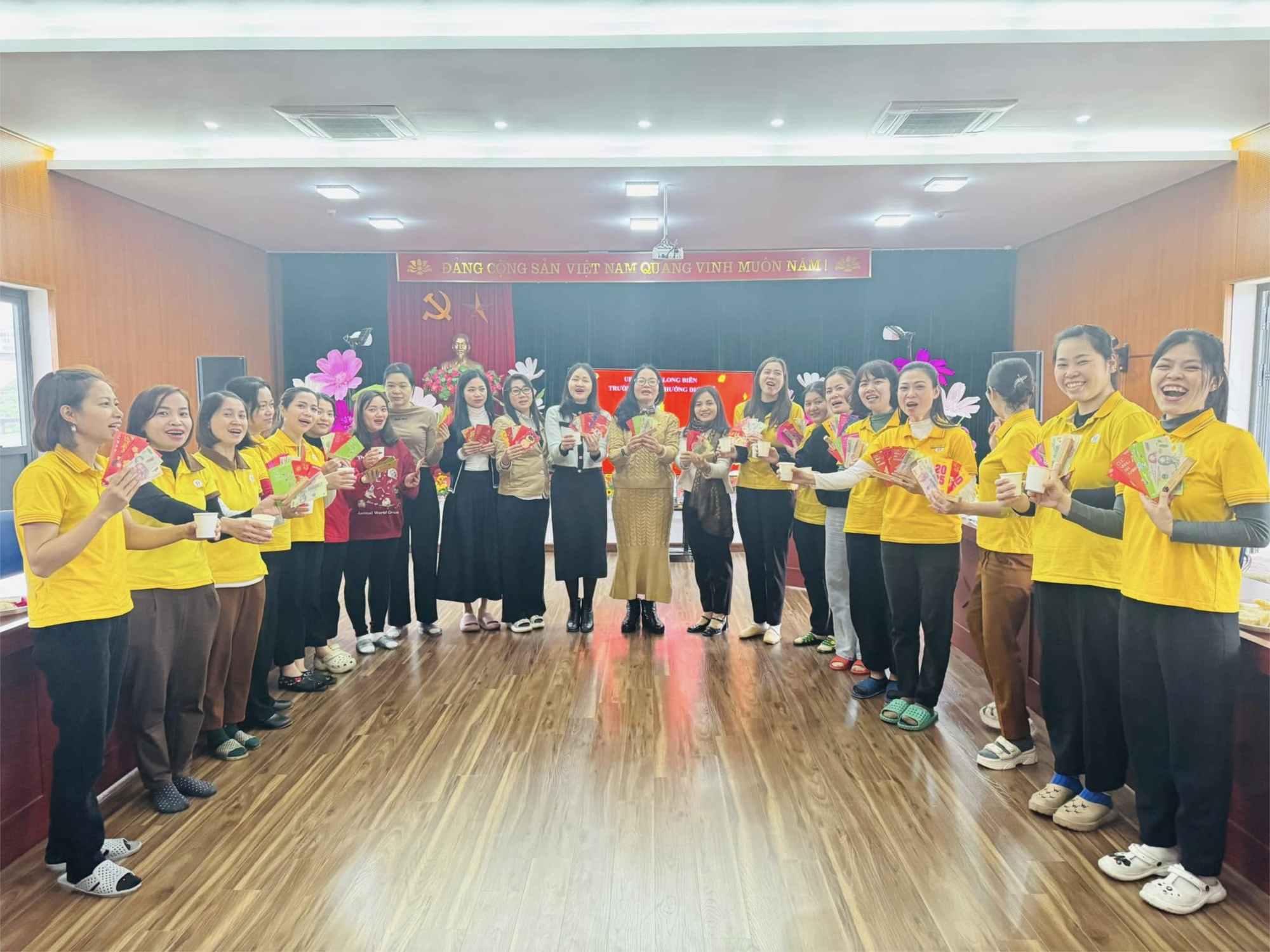 toàn thể CBGVNV. Mở đầu chương trình, cô Đỗ Thị Thanh Tâm – Hiệu trưởng nhà trường đã gửi lời chúc mừng năm mới đến toàn thể cán bộ, giáo viên, nhân viên, chúc mọi người một năm mới dồi dào sức khỏe, hạnh phúc và đạt nhiều thành công trong công tác.