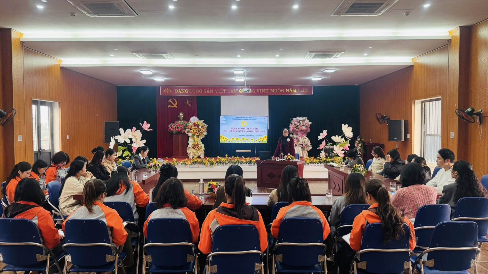 Song song với buổi gặp mặt Ban Đại diện Cha mẹ học sinh, 100% các lớp đã tổ chức họp phụ huynh sơ kết học kỳ I. Tại các lớp, giáo viên chủ nhiệm báo cáo cụ thể kết quả chăm sóc, nuôi dưỡng, giáo dục trẻ; thông tin tình hình học tập, nề nếp, sức khỏe và sự tiến bộ của từng trẻ. Đồng thời, giáo viên trao đổi với phụ huynh về những nội dung cần phối hợp trong việc chăm sóc, giáo dục trẻ tại gia đình, đảm bảo sự thống nhất giữa nhà trường và gia đình.