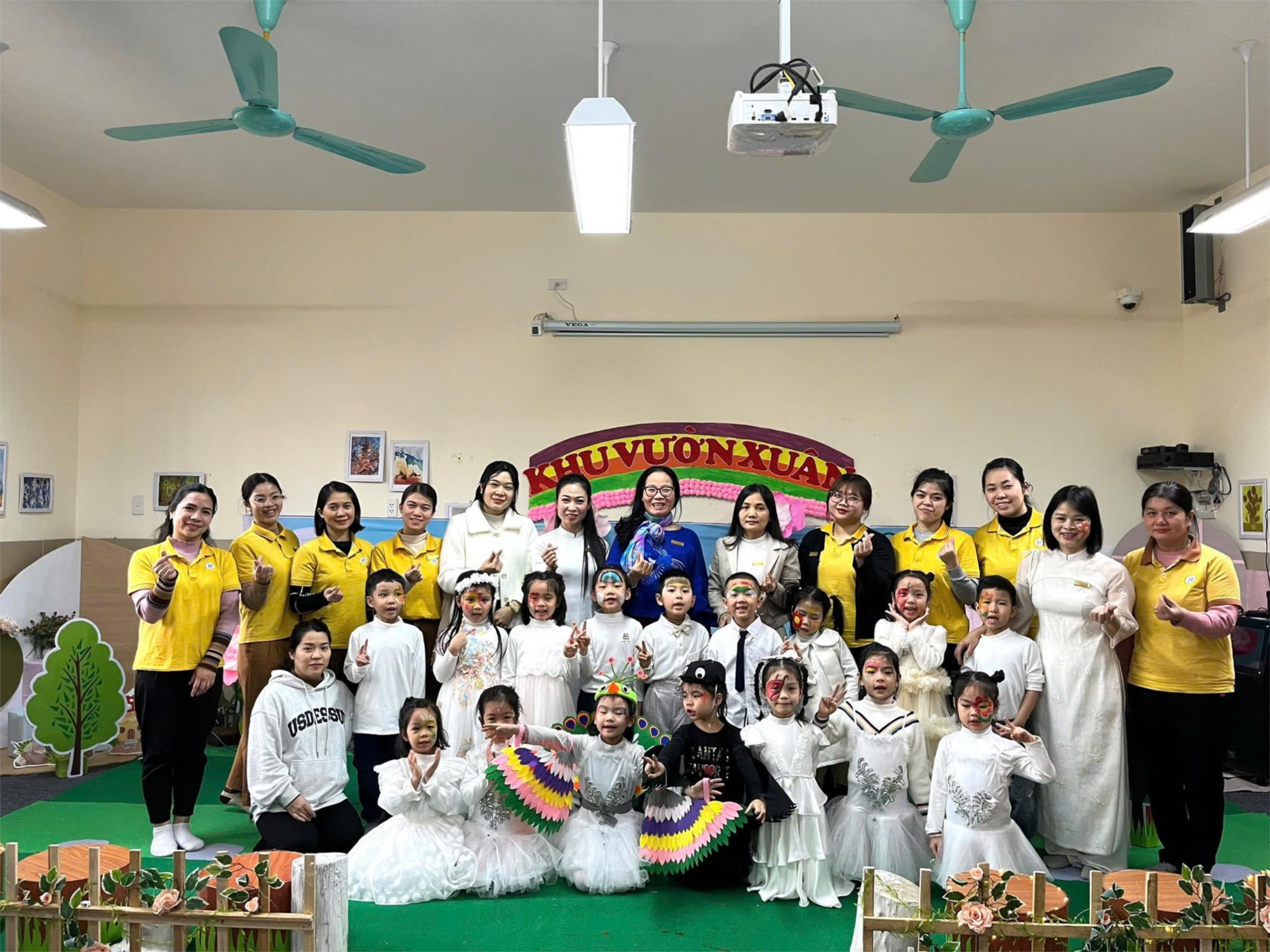 Buổi kiến tập có sự tham gia của Ban giám hiệu nhà trường, 100% giáo viên trong nhà trường cùng các bé lớp MGL A2. Dưới sự hướng dẫn của các cô giáo, các bé đã được trải nghiệm hoạt động vẽ mặt đầy sáng tạo, thú vị.