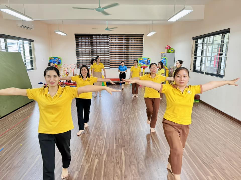 kinh, hoàn thiện các cơ quan phân tích vận động, các cơ quan cảm giác (thị giác, thính giác, xúc giác). Qua các bài tập Gym, các thầy cô giáo hướng dẫn bằng lời nói, bằng thị phạm động tác trong lớp học. Trẻ sẽ ghi nhớ hình ảnh động tác, lời nói của giáo viên, sau đó thực hiện lại các động tác theo yêu cầu của giáo viên. Đối với một số động tác khó, đòi hỏi con phải tư duy, suy nghĩ làm thế nào để thực hiện được động tác đó.