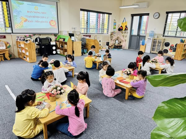 từng ngón tay nhỏ xinh khéo léo của các bé nhấc từng nan, từng nan để đan, sắp xếp giữa các nan ngang và nan dọc thật đáng yêu.