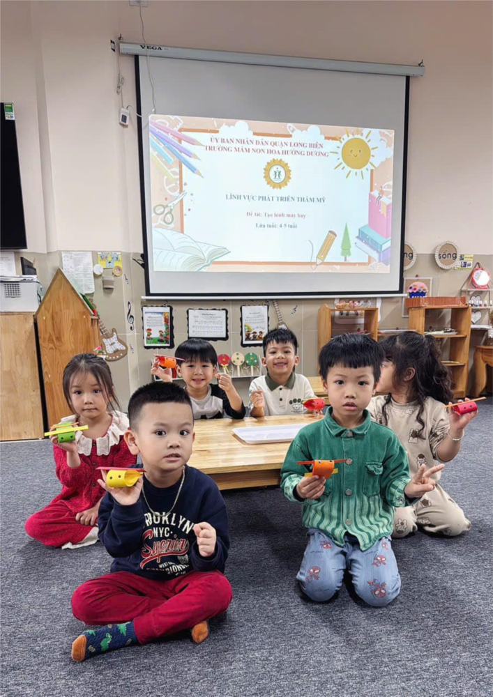 Trong buổi học hôm nay, các bé khối MGN đã có trải nghiệm thú vị khi tự tay tạo ra những chiếc máy bay đầy màu sắc từ bìa màu