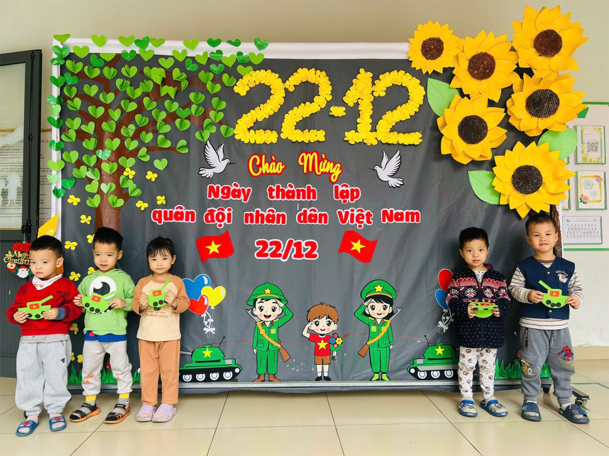 Hòa chung không khí thi đua chào mừng kỷ niệm Ngày thành lập Quân đội Nhân dân Việt Nam 22/12, các bé lớp mẫu giáo bé C3 đã hào hứng tham gia hoạt động tạo hình “Em yêu chú bộ đội – Bé làm xe tăng”.