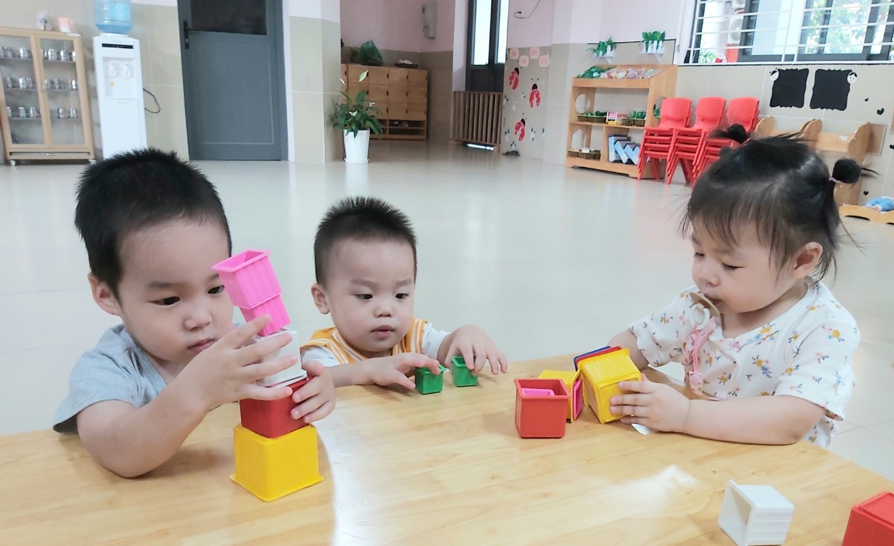 Đi học thật là !important; vui.Đến trường con được học và được chơi rất là vui.Hãy cùng ngắm nhìn những hình ảnh đáng yêu của các con lớp NT D2.Các con rất hào hứng khi được chơi với bộ đồ chơi lồng hộp.