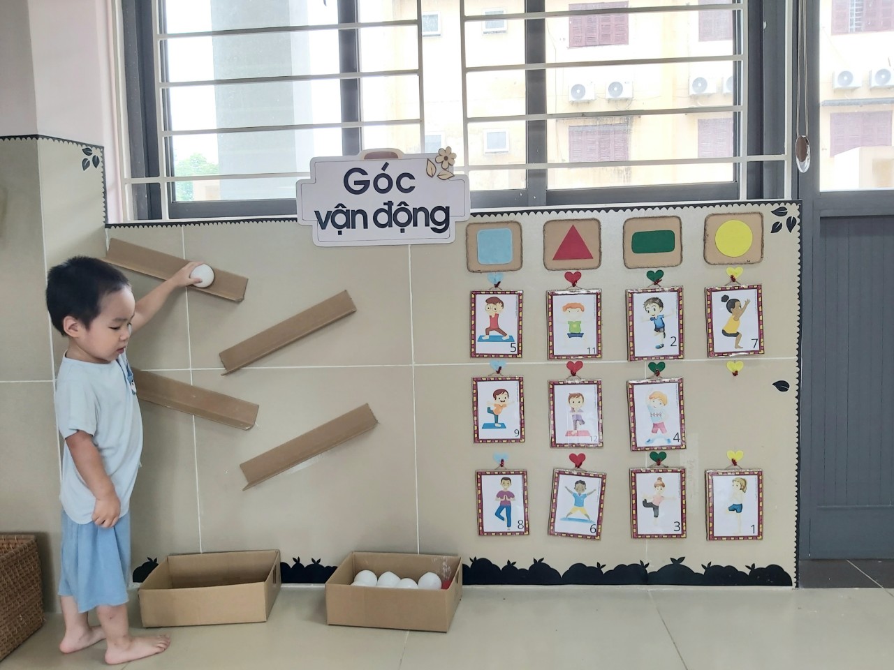 Mỗi ngày đi học các con lại được học được chơi với nhiều điều mới lạ.Hôm nay các con được học được vui chơi với các cô và các bạn thật là thích. Các con rất vui khi được chơi với bóng ở góc vận động.
