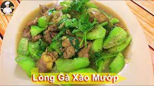 - Thêm chút hành hoa thái nhỏ và chút mì chính. Tắt bếp cho lòng gà xào mướp ra đĩa ăn cùng với cơm trắng.