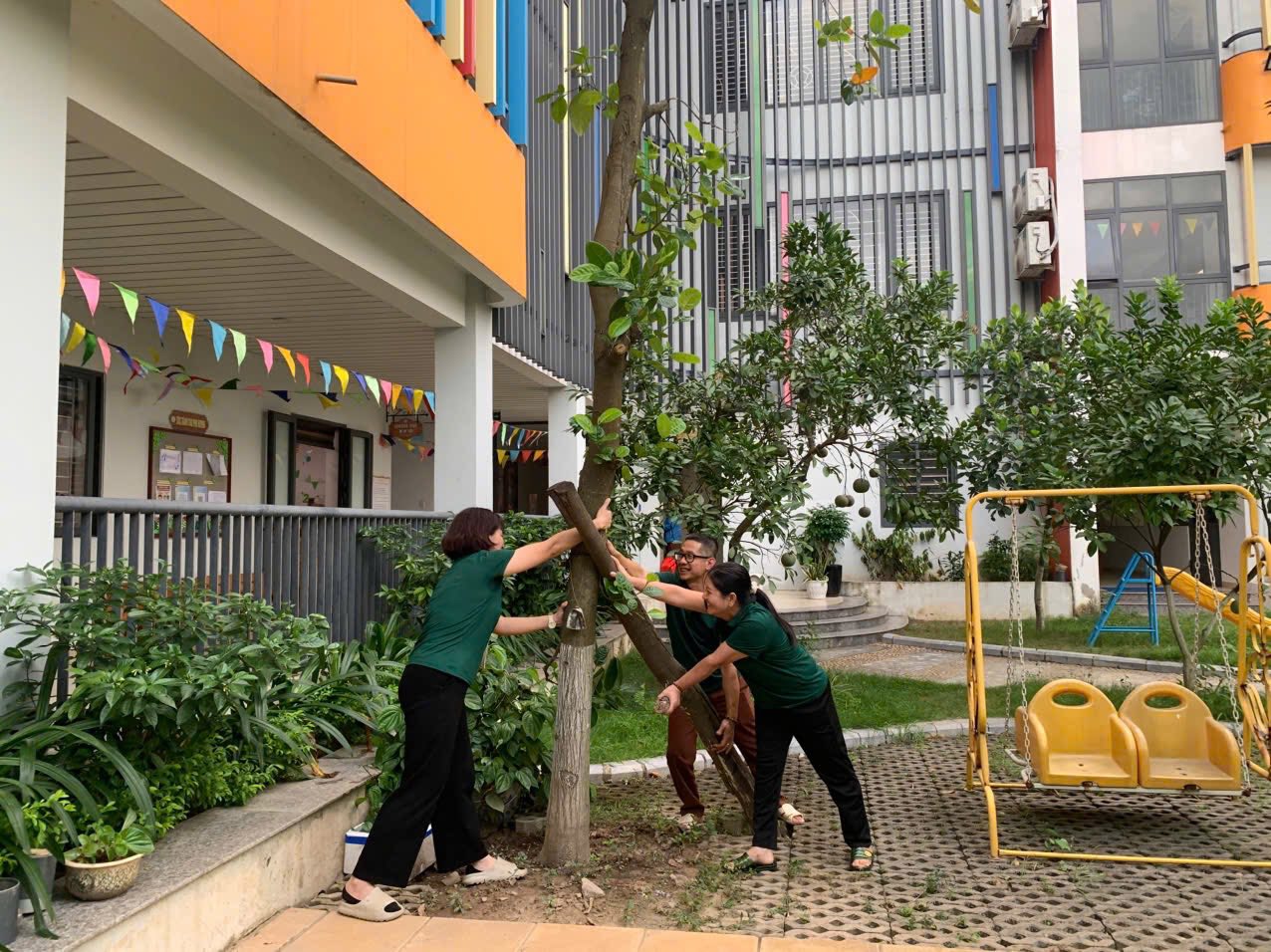 + Rà soát, gia cố cơ sở vật chất: Kiểm tra toàn bộ mái che, cửa lớp, hệ thống điện nước, cắt tỉa cành cây dễ gãy đổ; di chuyển đồ dùng đến nơi an toàn, khô ráo.