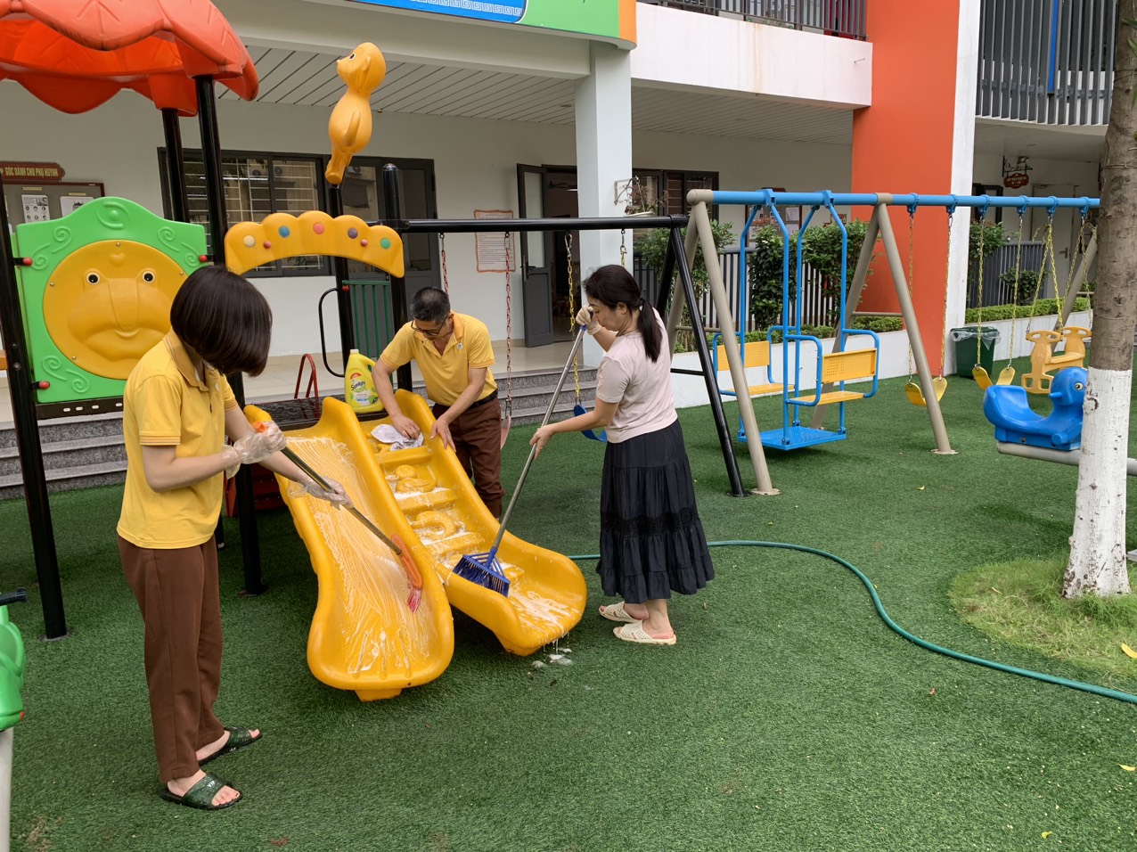 Để chủ động trong công tác phòng, chống sốt xuất huyết, sáng nay, ngày 04/05/2024, tập thể cán bộ, giáo viên, nhân viên trường mầm non Hoa Hướng Dương thực hiện tổng vệ sinh môi trường, phòng chống dịch Sốt xuất huyết và các dịch bệnh mùa hè như: Vệ sinh lớp học, phòng chức năng, hành hang, cầu thang, khuôn viên trường, khơi thông cống rãnh, diệt bọ gậy để phòng chống dịch bệnh sốt xuất huyết với phương châm: “ Không có bọ gậy, lăng quăng, muỗi, không có sốt xuất huyết”