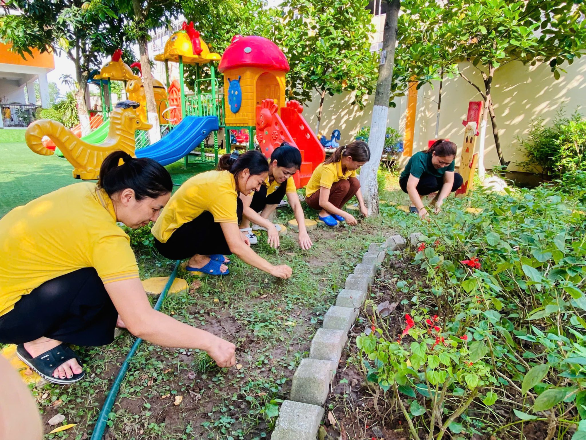 Trong mỗi buổi tổng vệ sinh, cán bộ - giáo viên - nhân viên nhà trường cùng chung tay dọn dẹp sạch sẽ lớp học, sân trường, khu vực nhà vệ sinh, nhà bếp… Các vật dụng chứa nước được kiểm tra kỹ lưỡng, úp ngược hoặc có nắp đậy để không tạo điều kiện cho muỗi sinh sản. Các khu vực cây xanh, chậu hoa cũng được chăm sóc, dọn dẹp thường xuyên để đảm bảo khô thoáng, sạch sẽ.