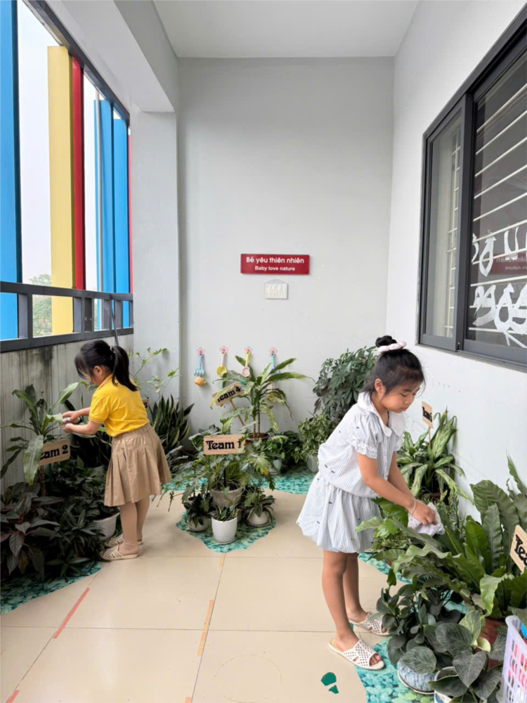 Trong không khí vui tươi, trách nhiệm, các cô giáo cùng nhân viên nhà trường đã tích cực lau chùi đồ dùng, đồ chơi, vệ sinh lớp học, hành lang, cầu thang; sắp xếp lại góc học tập, góc vui chơi gọn gàng, ngăn nắp. Khu vực sân trường, bồn hoa, khu vui chơi ngoài trời cũng được quét dọn sạch sẽ, đảm bảo an toàn cho trẻ khi tham gia các hoạt động.