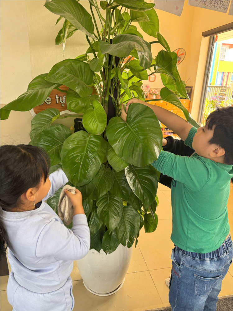 Vào mỗi cuối tuần, trường mầm non Hoa Hướng Dương tổ chức hoạt động tổng vệ sinh để đảm bảo môi trường học tập, vui chơi của các bé luôn sạch sẽ, an toàn và thoải mái. Đây là một hoạt động rất quan trọng, không chỉ giúp cải thiện không gian học tập mà còn rèn luyện cho các bé tinh thần vệ sinh, ý thức bảo vệ sức khỏe cộng đồng. Hoạt động tổng vệ sinh không chỉ giúp trường lớp trở nên sạch đẹp, mà còn góp phần bảo vệ sức khỏe của các bé, đặc biệt là trong môi trường học tập đầy sôi động như trường mầm non. Việc giữ gìn vệ sinh môi trường là một trong những yếu tố quan trọng giúp phòng ngừa các bệnh nhiễm trùng và các bệnh về đường hô hấp, tiêu hóa do vi khuẩn và virus.