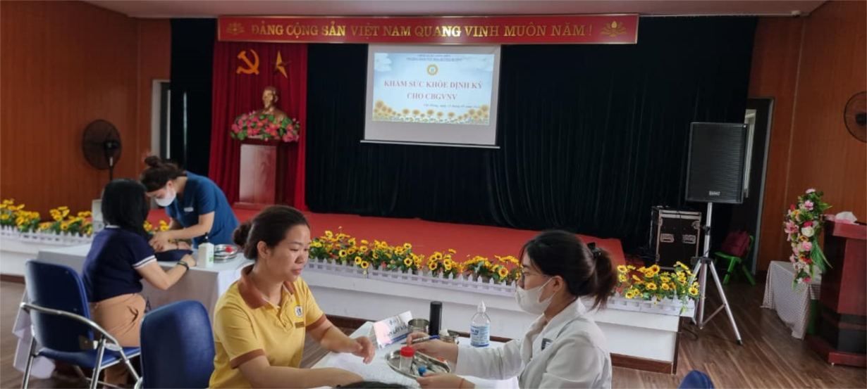 TRƯỜNG MN HOA HƯỚNG DƯƠNG TỔ CHỨC KHÁM SỨC KHOẺ ĐỊNH KỲ CHO CÁN BỘ GIÁO VIÊN NHÂN VIÊN NĂM 2023
