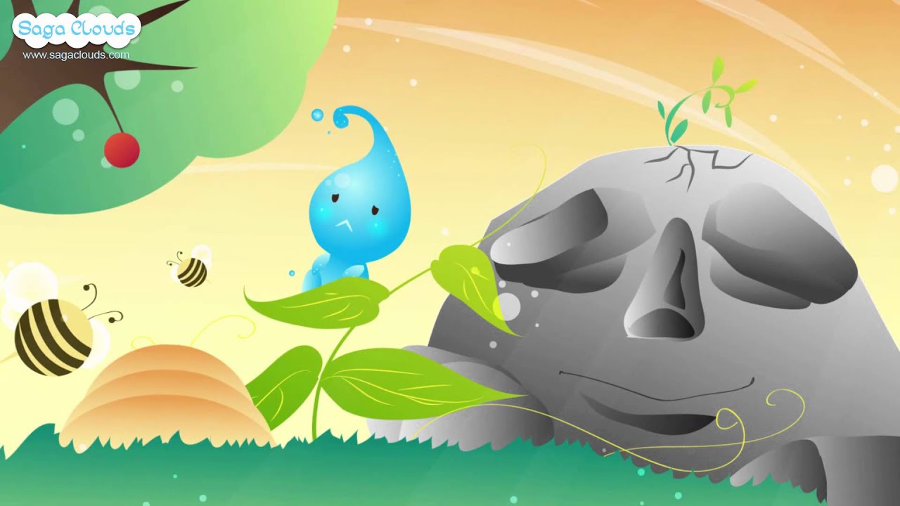 Khi tỉnh dậy, chú ngơ ngác thấy mình đang treo lơ lửng trên một ngọn cỏ, bên cạnh có một tảng đá. Đó là Đá Thần. Bầy ong mang hũ mật thơm ngọt đến thăm. Bác Cây thả xuống những quả ngọt đầu mùa. Đàn chim từ đâu bay tới ca hát. Nhưng Giọt Nước vẫn buồn rầu. Đá Thần liền bảo: