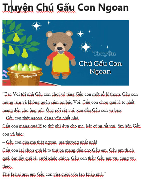 – Gấu con của mẹ thật ngoan, mẹ thương nhất nhà!