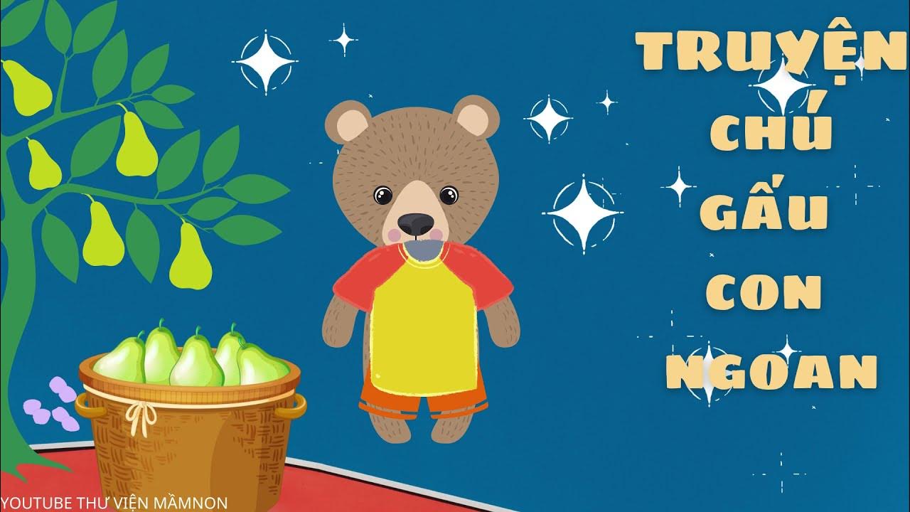 Bác Voi tới nhà Gấu con chơi và tặng Gấu con một rổ lê thơm. Gấu con mừng lắm và không quên cám ơn bác Voi.