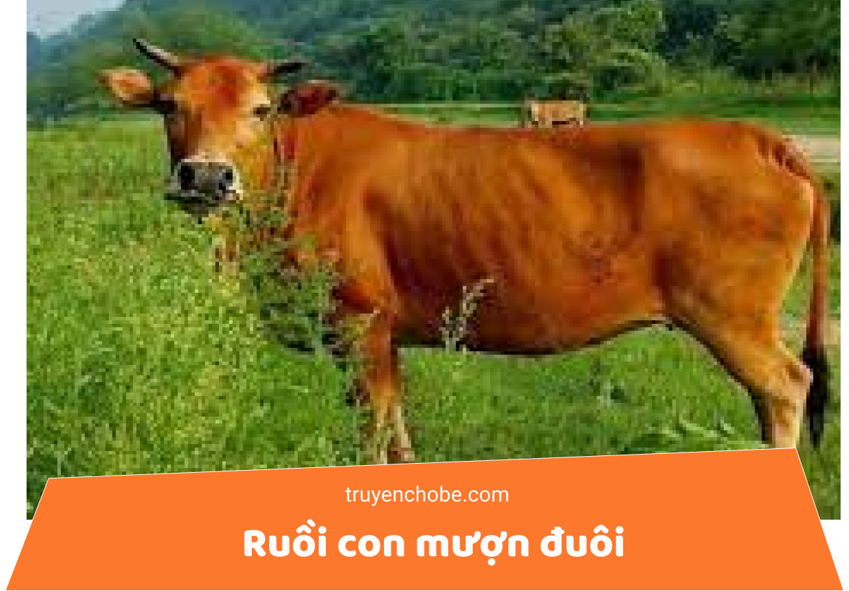 Ruổi chỉ còn cách bỏ đi, bỗng nó nhin thấy một bác bò vàng, thế là liền bay tới mượn đuôi. Nó bắt chuyện với Bò vàng nhưng Bò vàng không trả lời. Bỗng nhiên bò quẫy đuôi một cái thật mạnh, quật ngay vào người Ruồi khiến nó đau điếng. Lúc đó, Bò vàng cười nói:” Cái đuôi này của tôi chính là để đánh Ruồi đấy!”