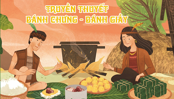 Tiết Liê !important;u tỉnh dậy, vô cùng mừng rỡ. Ông làm theo lời Thần dặn, chọn gạo nếp thật tốt làm bánh vuông để tượng hình Đất, bỏ vào chõ chưng chín gọi là Bánh Chưng. Và ông giã xôi làm bánh tròn, để tượng hình Trời, gọi là Bánh Dầỵ Còn lá xanh bọc ở ngoài và nhân ở trong ruột bánh là tượng hình cha mẹ yêu thương đùm bọc con cái.